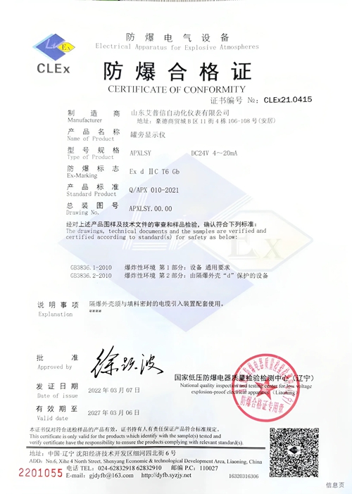 標(biāo)準(zhǔn)款音叉物位開關(guān),優(yōu)質(zhì)防爆鑄造鋁殼,不銹鋼銘牌,sus316叉體材質(zhì)。 型號:APXYC504 應(yīng)用:液體/粉體 供電:24VDC/220AC 輸出:繼電器(DPDT) 連接過程:G1''螺紋 叉體長度:100mm 介質(zhì)溫度:-30℃-80℃ 壓力:≤4MPa 防爆等級:Exd IIC T6 Gb 防護等級:IP65